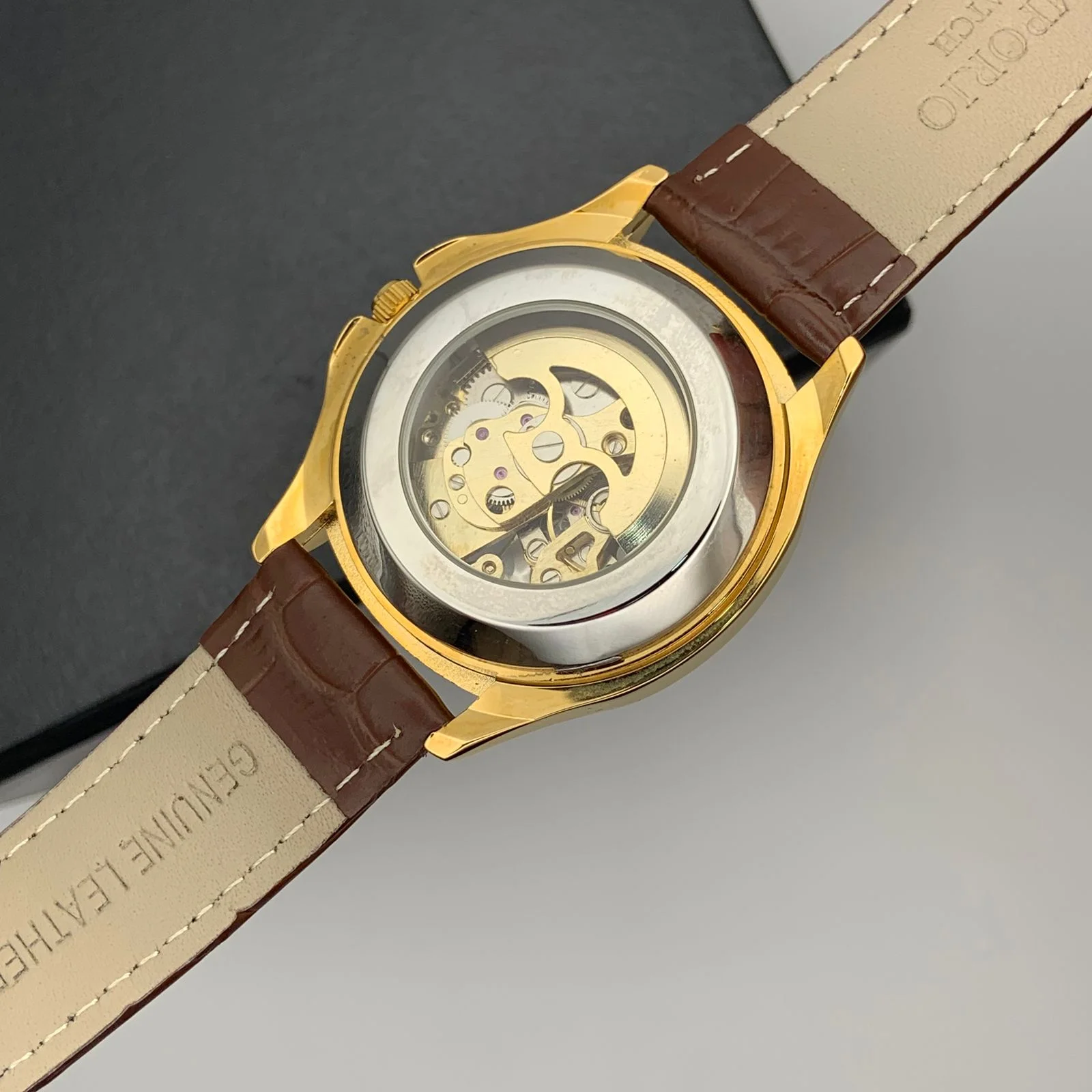 Golden Skeleton Brown Leather Strap (Automatic Watch)