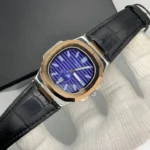 Luxurious Gold Watch with Black Leather Strap ( Blue Dial )