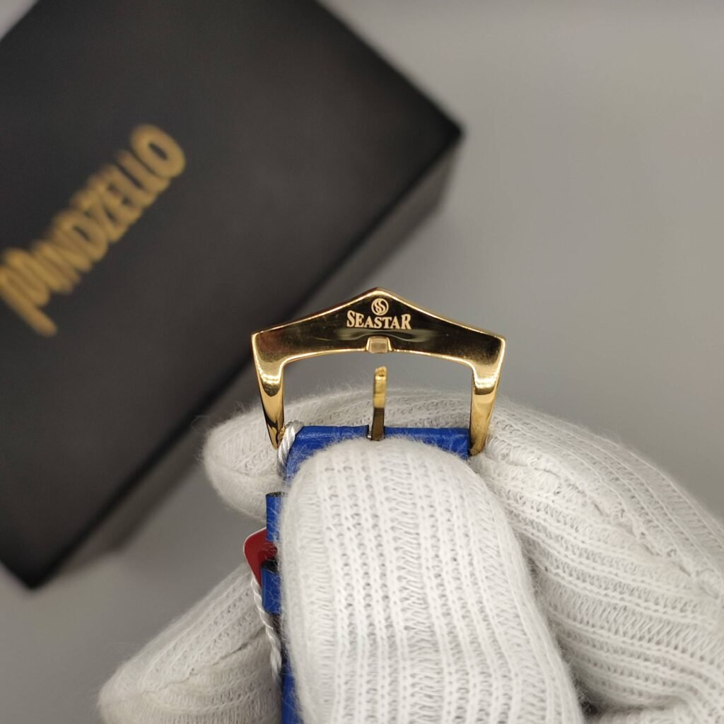 Seastar Amd Leather Strap Watch (Gold Dial Inner Blue)