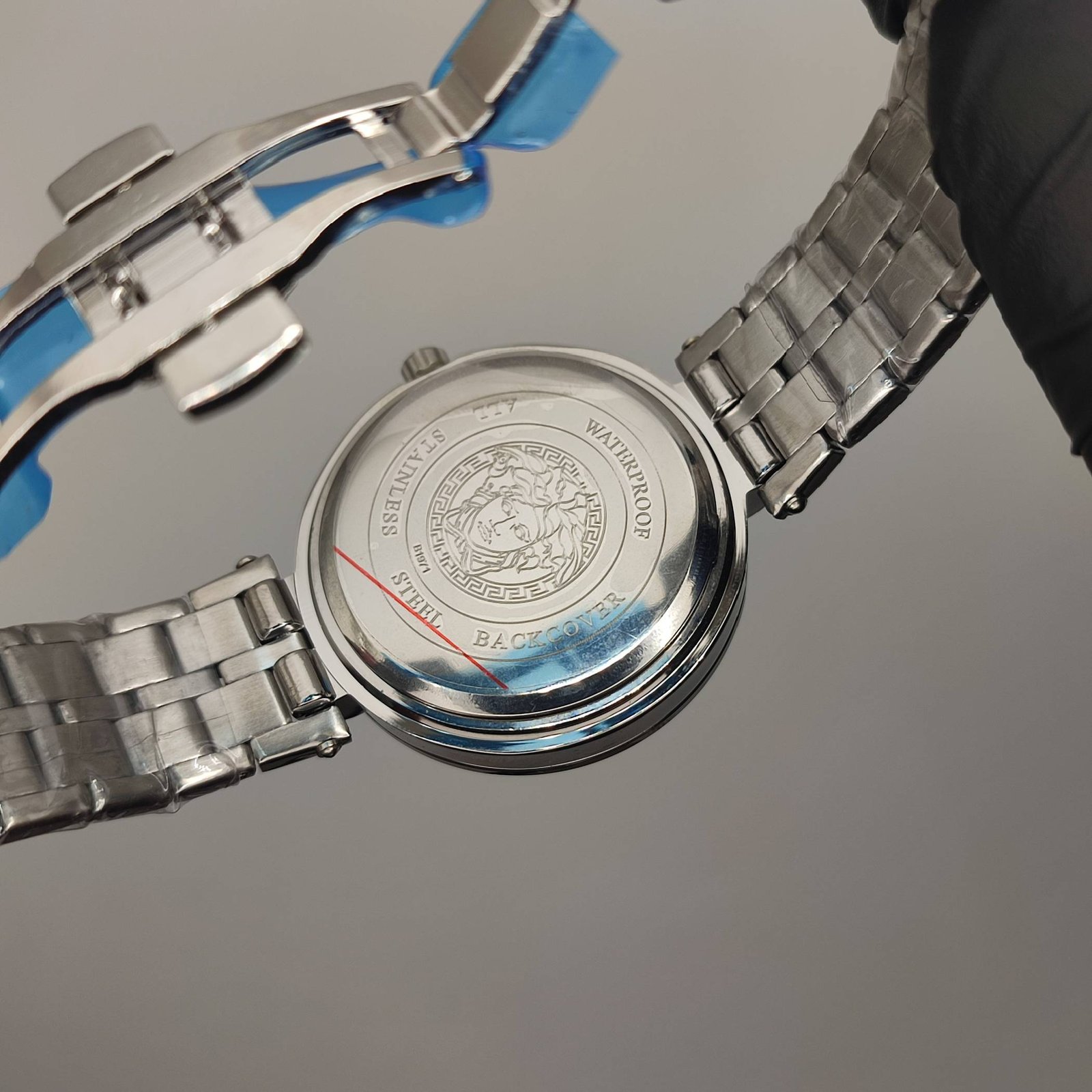 Versace Stainless Steel Men’s Watch – Silver Chain (Black Dial)